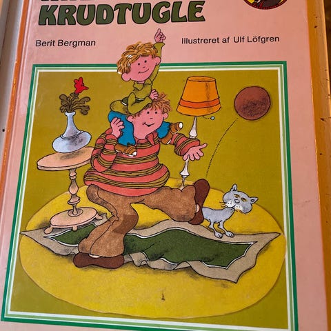 Billedbog om Kalle Krudtugle af Berit Bergman med farverige illustrationer på hver side.