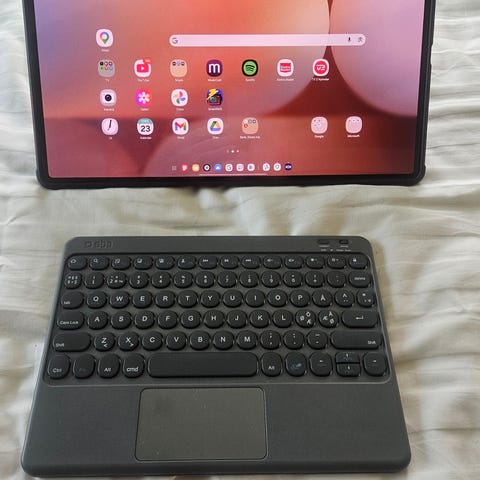 Samsung Galaxy Tab S10 Ultra 14,6" med 256 GB lagerplads i grå. Ligger i original æske med papindlæg og papir fra købet vist på billederne. Har kun været brugt en gang og det var opdatering