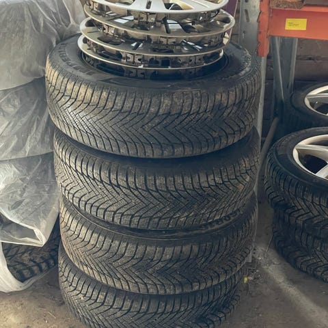 komplet sæt vinterdæk med fælg sidst påmonteret Mini Clubman 2,0D. alt OK inklusive trykmålere i hvert hjul med navkapsler.