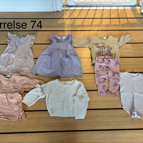 Pigetøj brugt til min datter i størrelserne 56 inkl. strømpebukser, nattøj, neoprenbadebukser (3-6mdr), stofbleer, køredragter, solhatte, hue, vanter, hagesmækker.