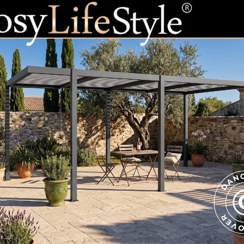 Bioklimatisk pergola pavillon San Pablo Alu+, Open Side, 4x5,8m, Sort