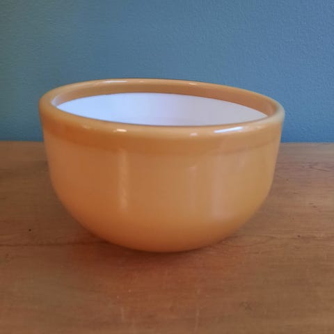 Stor flot skål fra Holmegaard, design tilskrevet Michael Bang. Produceret i 1980'erne. Diameter 20 cm. Højde 12,5 cm. Har et lille afslag/ 2. Sortering. Prisen er sat derefter.