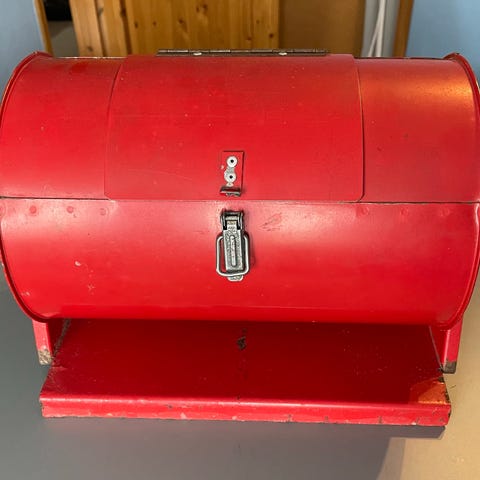 Allux 100 top loading postkasse i flot postkasserød farve. Har kun lige været monteret og taget ned igen, så den står som ny.