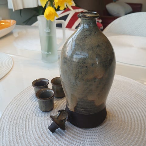 Smuk håndlavet keramik krukke med låg. Fra Visby keramik