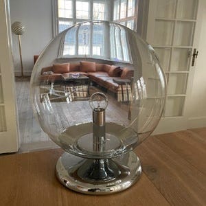 Udført i krom og med vippebar lampestang og vippebar skærm. Afbryder på lampefoden.