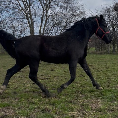 Han vil ende ud som en meget smuk ride hest med mange muligheder, tur og hygge hest, horsmanship, dressur og spring… og uanset hvor han kommer til at dukke op… i skoven eller dressurbanen… så vil han blive lagt mærke til, men hans udstråling og skønhed…samt hans blide og kærlige sind…
