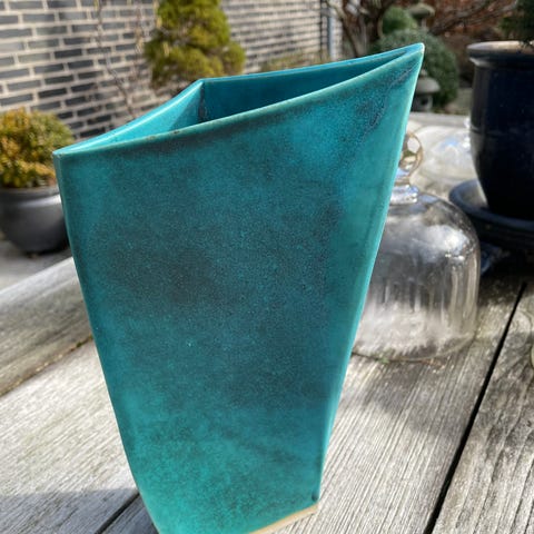 Firkantet krukker i blå glasur, velegnet til udendørs brug på terrasse, altan eller i have. Der følges med leca kugler/fyldning samt diverse plantevogne på små hjul der gør nemt at flytte krukker efter behov.