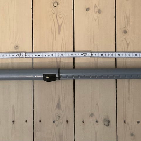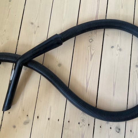 Bosch støvsugerslange med håndtag og gråt ribbet rør. Passer til Bosch støvsuger med klik-montering i enden af slangen.