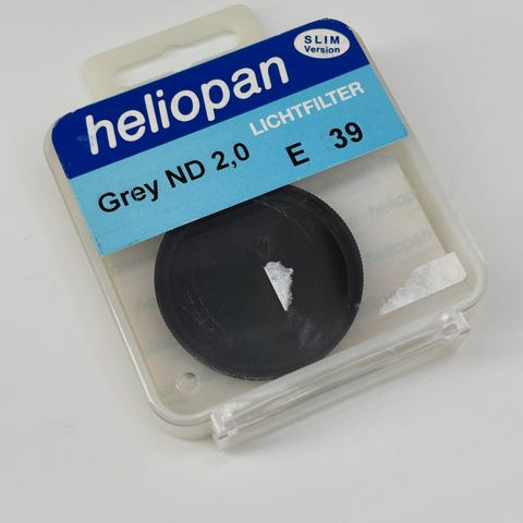 Pæn stand ND filter fra heliopan i æske. Få overfladiske støvkorn der kan fjernes. 72mm.