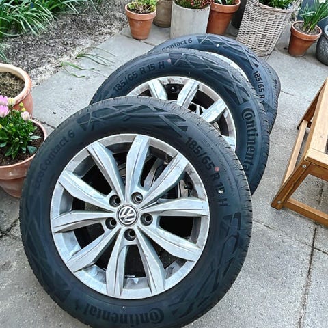 1 sæt 15” alufælge til en vw bobbel med et reservehjul magen til.