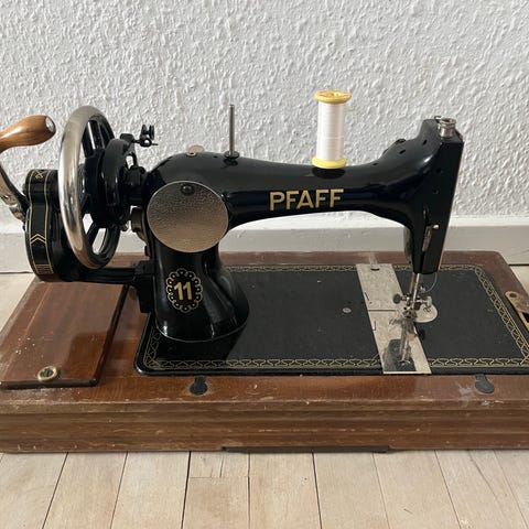 Vintage symaskine med forlænget bord og manual. Testet og virker