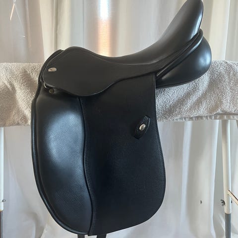 Kvalitets sadel fra Schleese, sadlen er 17,5” (svarer til alm 17”) med skulderfrihed og PSI paneler for optimal vægtfordelingen over hestens ryg.