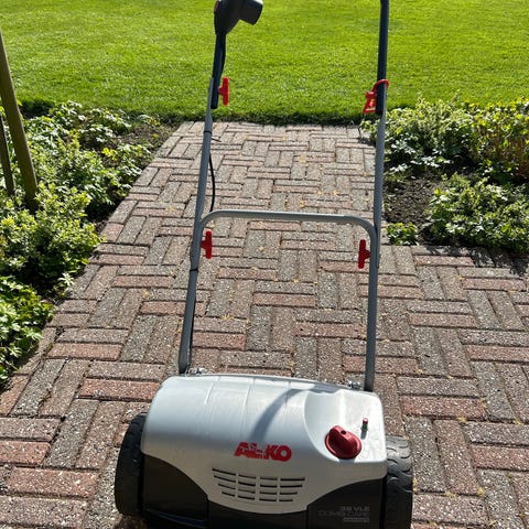 AL-KO elektrisk vertikalskærer CombiCare 32 VLE til plænen. Har justerbar håndtag, store hjul og roterende knive under bunden til at lufte græsset.ekstra valse til vertikalskæring medfølger. Plænelufter og mosfjerner.