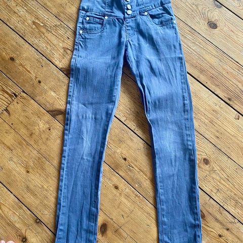 bukser til dreng i str 140. Har elastik i taljen, knaplukning foran og lommer både foran og bagpå.