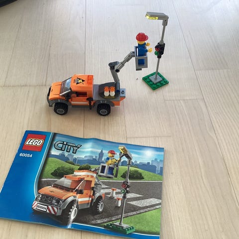 El-stigevogn/lift, Light repair truck, sæt 60054 inkl. minifigur, med alle klistermærker, et blink er af anden type, ellers er sættet komplet, byggevejledning kan ses online hos Lego, god stand, sendes gerne