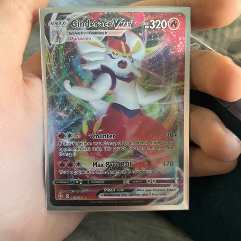 Sælger dette Pokémon kort med Eevee VMAX og angrebet G-Max Cuddle. Har været opbevaret i plastiklomme sammen med et sort/guld sleeves med Eevee motiv.