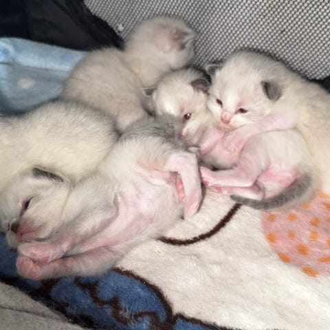 Vores kat Vivi har fået 3 søde killinger d. 23/4/26. 2 grå/hvide hunner og en helt sort han. Annoncen vil blive løbende opdateret med billeder.
