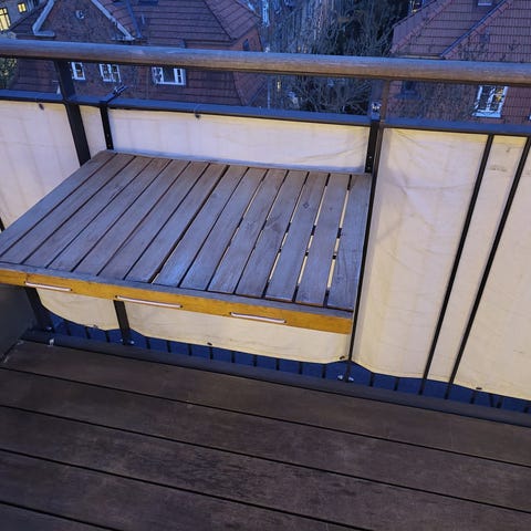 Kan justeres op og ned og i forhold til fastgørelse til altanen