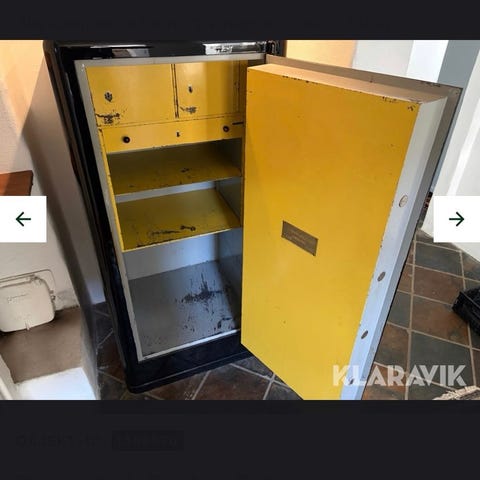 Afhentning: Skabet er meget tungt (gedigent støbejern/stål), så køber skal selv stå for afhentning og transport. Det kræver et par stærke folk og en solid vogn.
