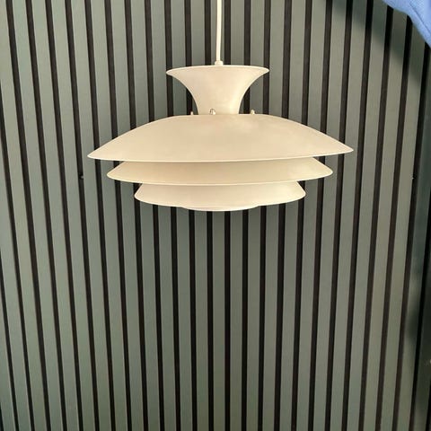 1 stk hvid metal pendel. Ø 43 cm. Fin stand