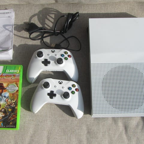 Xbox er i perfekt stand, alt virker som den skal. Medfølger original controller, original Xbox headset, 4 spil og kabler.