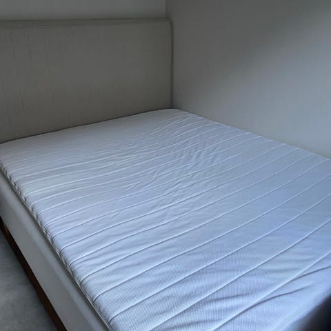 Kontinentalseng 180x200 – som ny, inkl. gavl og topmadras