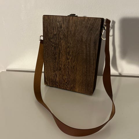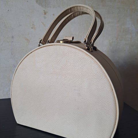 Fin rund lille kuffert / taske med rem og motiver fra Paris