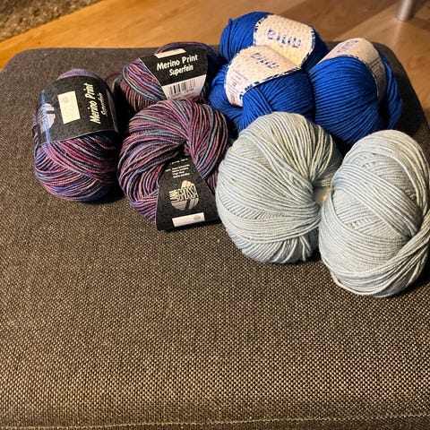 Sælger en bunke blandede garnnøgler i forskellige farver som på billedet. Godt mix til strik eller hækleprojekter, hvor du mangler lidt ekstra garn i flere nuancer.