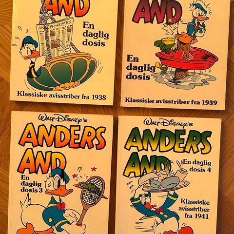 Sælger samlet sæt af de populære "En daglig dosis"-bøger. Her får du de helt klassiske avisstriber fra Andebys guldalder, tegnet af de legendariske tegnere (bl.a. Al Taliaferro).