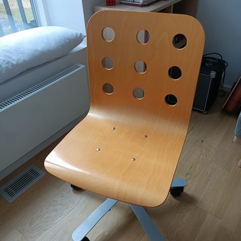 Rigtig fin kontorstol med 9 huler i ryglænet , på hjul og med justerbar sædehøjde