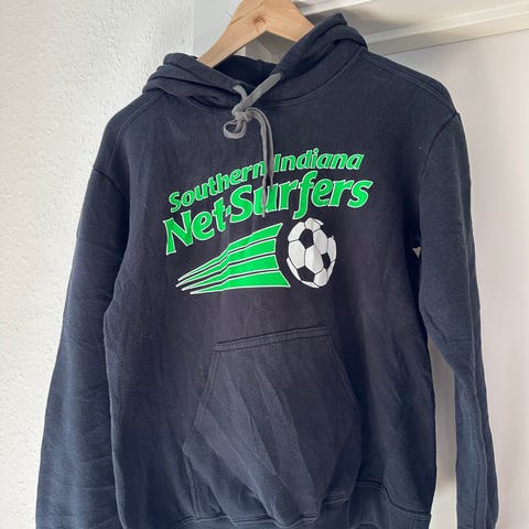 Sort Raider Volleyball hættetrøje i str L med tryk på brystet. Har snøre i hætten og stor kængurulomme foran.