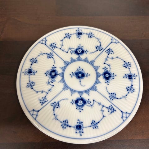 Fint Royal Copenhagen Mega Mussel kagefad fad i hvid med blå dekoration. God som serveringsfad til fx kage eller tapas på bordet.