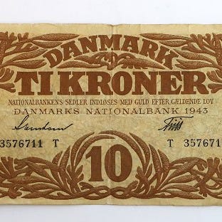 Danmark. Pengeseddel 10 kr. 1948 s.