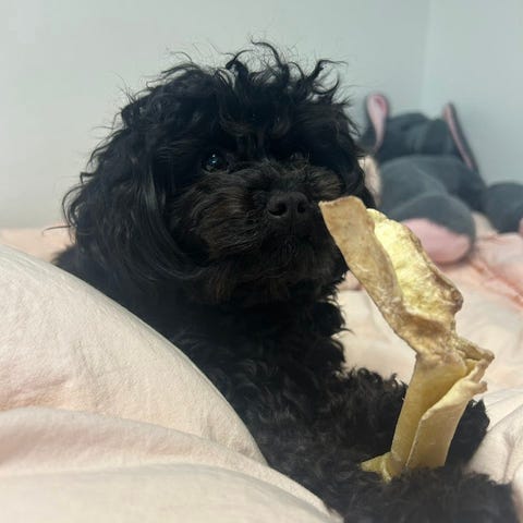 Når de flytter herfra følger der også en pose hvalpefoder med til den første tid.