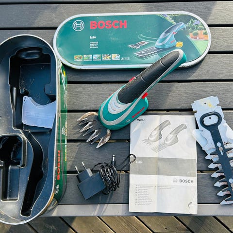Grøn batteridrevet hækkeklipper / græssaks