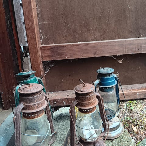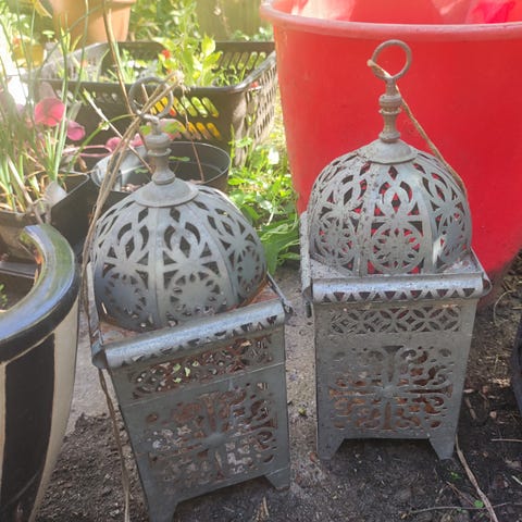 2 Store flotte Lanterner med patina. Måler 67 cm høj. Prisen er pr stk.