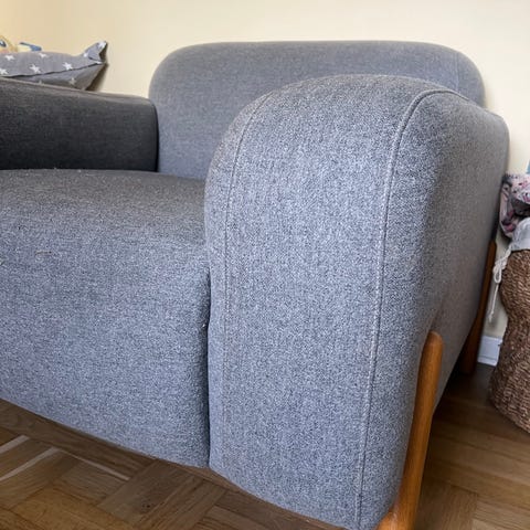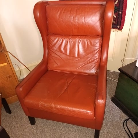 uden huller/pletter, man sidder godt i den , først til mølle, trænger til at blive støvsuget. afh 4070