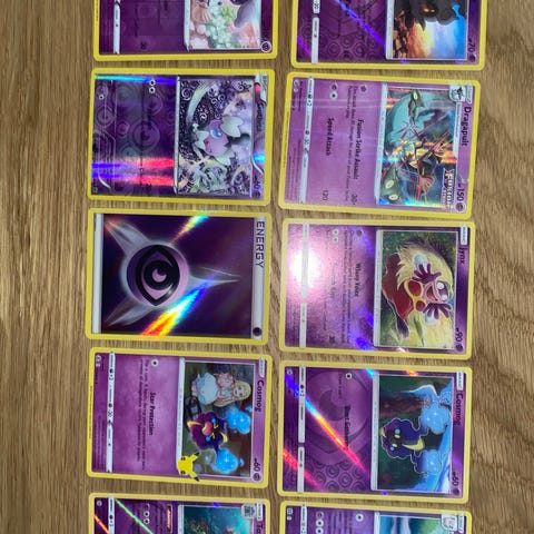 Samling af forskellige holo Pokémon kort som på billedet.