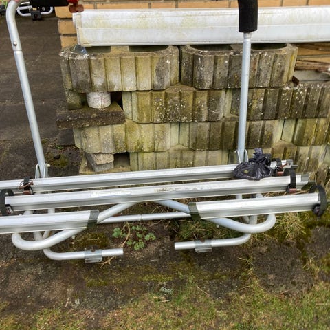 Vigtig info: Der mangler én "Bike-Block" arm (den der holder stellet på den ene cykel). En ny kan købes hos de fleste campingforhandlere eller online for ca. 150 kr. Prisen er sat derefter.