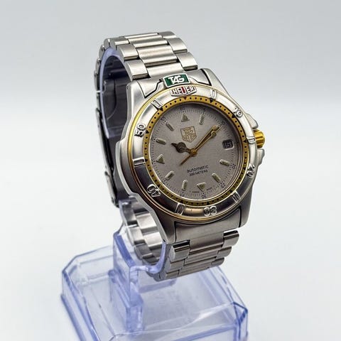 Uret på billedet er et Tag Heuer Professional 2000, som er en klassisk schweizisk model fra 1990'erne. Det er et robust dykkerur, der er kendt for sit tidløse design og schweiziske kvartsværk.