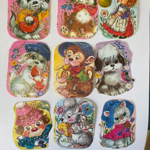 Heste, hunde, og andre husdyr. (nogle af billederne fra midt i 40'erne) et foto,som har været bukket sammen.