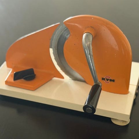 Rigtig flot EVA ORANGE brød / pålægsmaskine - god stand og virker perfekt.