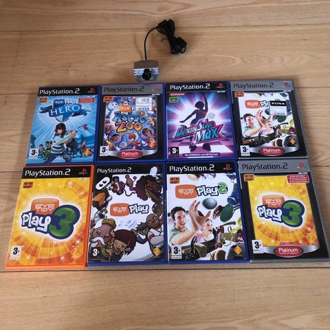 Samling til PlayStation 2 med to Buzz-spil, Grand Theft Auto og flere Buzz-buzzere med ledning. Sælges samlet som vist på billedet.