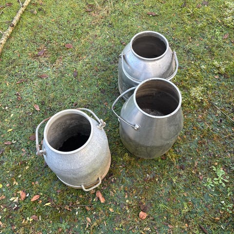 Flere gamle mælkespande i metal sælges samlet eller enkeltvis 100kr pr styk