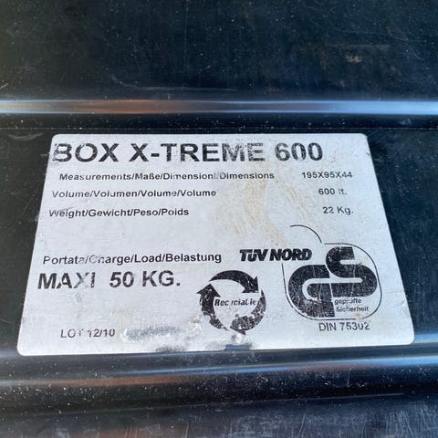 Sort tagboks til bil, god plads til oppakning. Åbnes fra siden. Ydermål er 190x90x35.