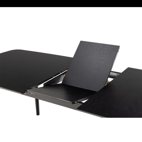 Montreaux spisebordet er ideelt til både hverdag og gæstemiddage. Med det smarte butterfly-udtræk kan du hurtigt og nemt forlænge bordet, så der er plads til flere gæster. Den integrerede opbevaringsløsning til tillægspladen sikrer, at du altid har den lige ved hånden. Bordetog tillægspladen er sortlakeret.