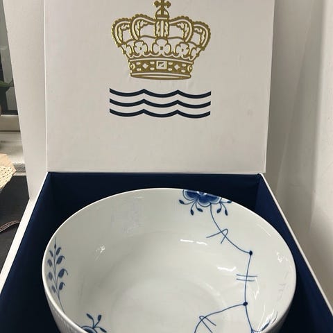 2 desserttallerken no 620 - 1 stort fad no 627 - 1 Tallerken no 622 - lille fad no 356 - 1 dyb tallerken no 604 - 2 termokopper no 495 sælges samlet. Enkeltvis bliver prisen lidt højere