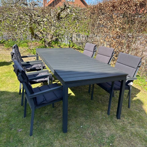 Havebord med 6 stole i sort til altan/terrasse