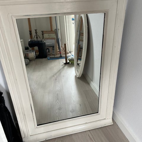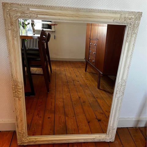 Gammelt hvidmalet spejl.