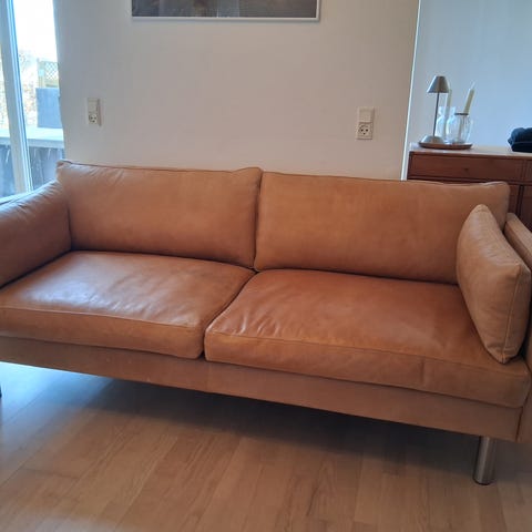 Lædersofa, Brunstad 3,5 pers sofa, Nubuck læder